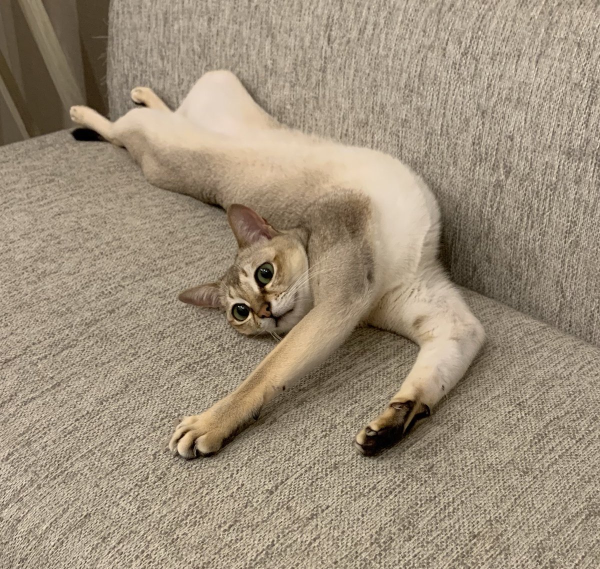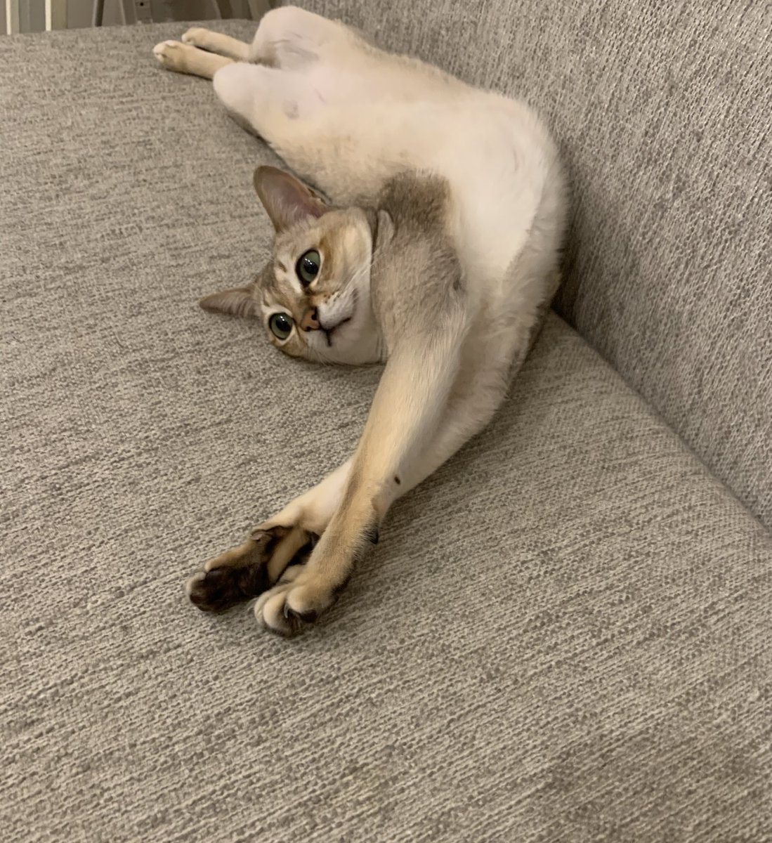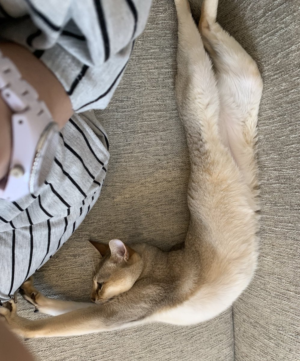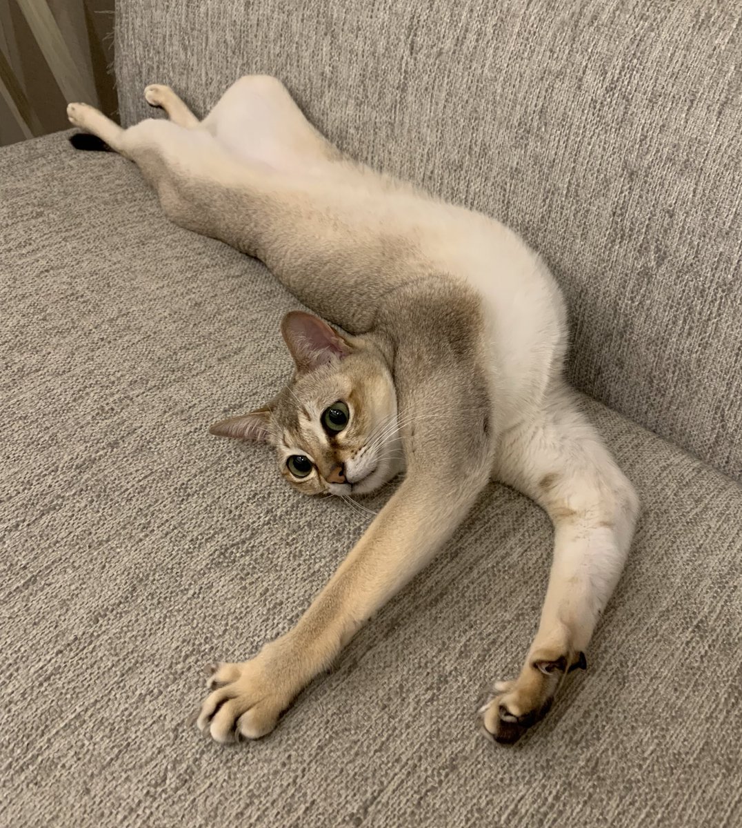 帰宅すると高確率でお腹をストレッチに使われます。