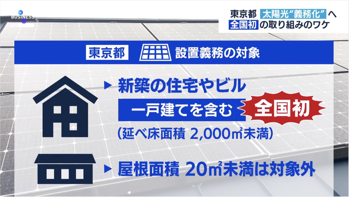 東京都、新築住宅に太陽光パネル義務化へ