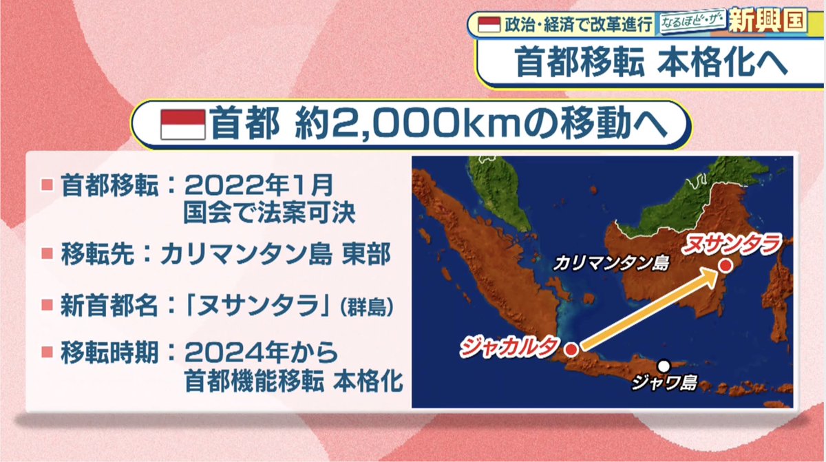 インドネシア首都移転 (背景) 1⃣交通渋滞、地盤沈下、洪水被害などジャカルタが抱える問題 2⃣ジャワ島と他地域との格差是正を目指す