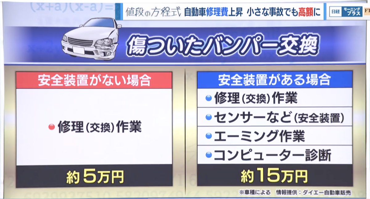 安全装置の義務化で、自動車修理費が上昇