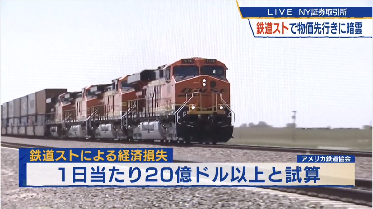 アメリカで鉄道スト →トラック使用で運送費が増加 →スト長期化ならインフレ率がさらに上昇する可能性も