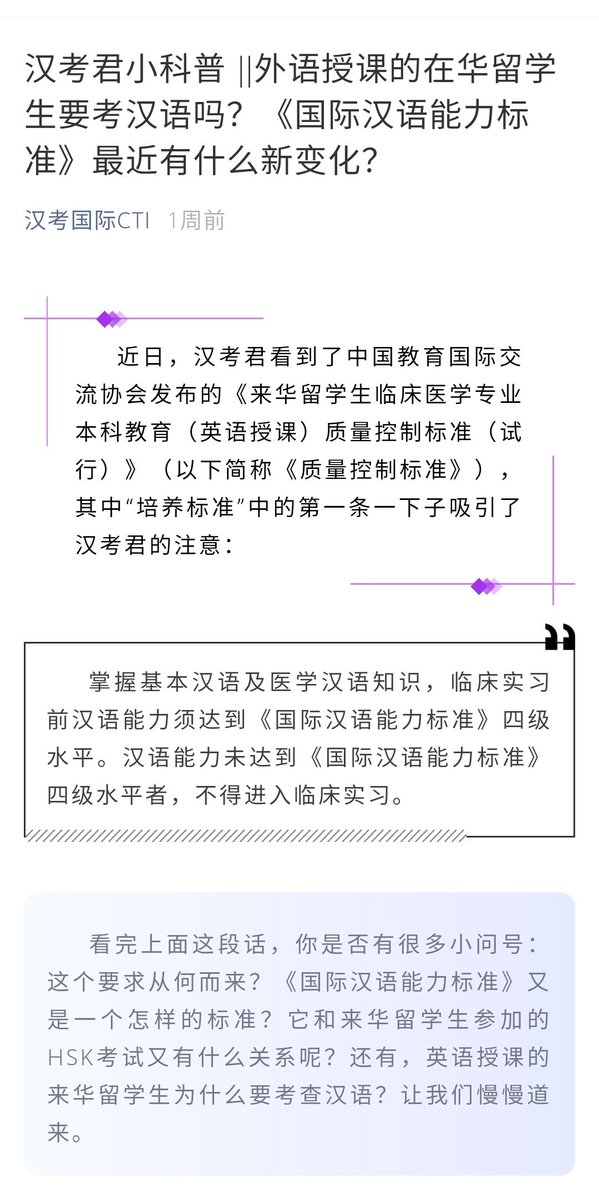 1.วันที่ 20 พ.ค. แอคเค้าท์สาธารณะของสถาบันติวใบประกอบ《国际汉语教师证书Guójì hànyǔ jiāoshī zhèngshū ใบประกอบวิชาชีพครูสอนจีนนานาชาติ》เผยแพร่บทความพร้อมขึ้นรูป HSK โดยระบุว่าปีนี้Hskจะทำการปฏิรูปครั้งที่2 โดยจะเปลี่ยนเป็น9ระดับ