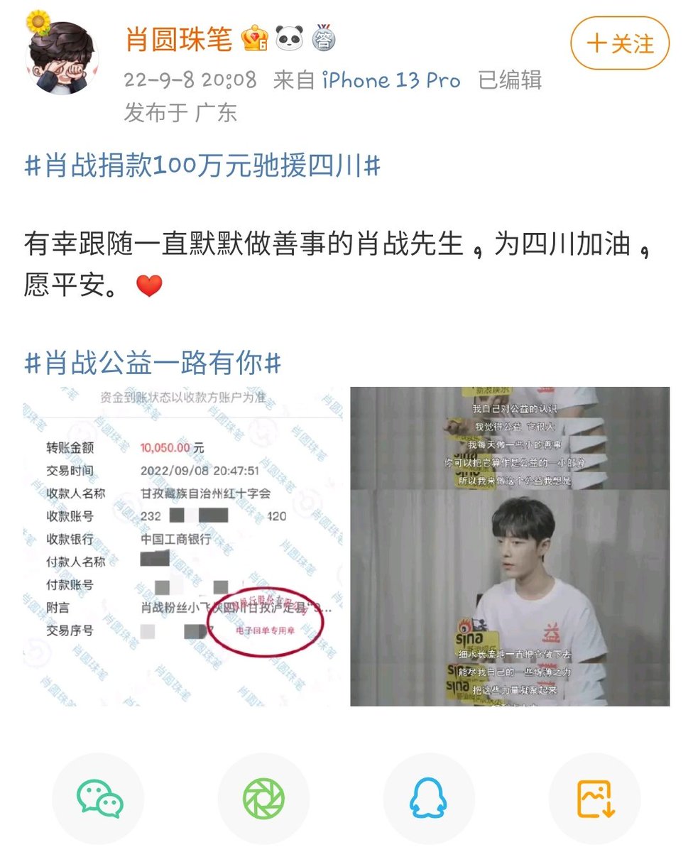 เซียวจ้านก็เป็นคนที่ทุ่มเทกับการทำบุญทำกุศลมากจริงๆแหละ เขารู้ว่าเงินที่เขาให้ไปยังไงก็ช่วยเหลือคนได้อีกมากมาย เขาเลยไม่เคยสังเลที่จะช่วยบริจาคเลย ให้มากที่สุดเท่าที่ได้ ขนาดของเล่นไม่ถึง 30 หยวนบอกแพง เสื้อผ้าหลายชุดก็ใส่มา 5 6 ปีแล้ว เวลาทำคอนเท้นกินอาหาร ก็บอกกินให้หมดตลอด