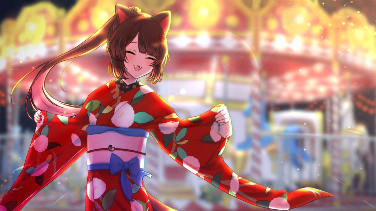 PowerWashSimulatorでメリーゴーラウンドとお着物の組み合わせがとっても良かった🎪(背景はクリスタの3D)