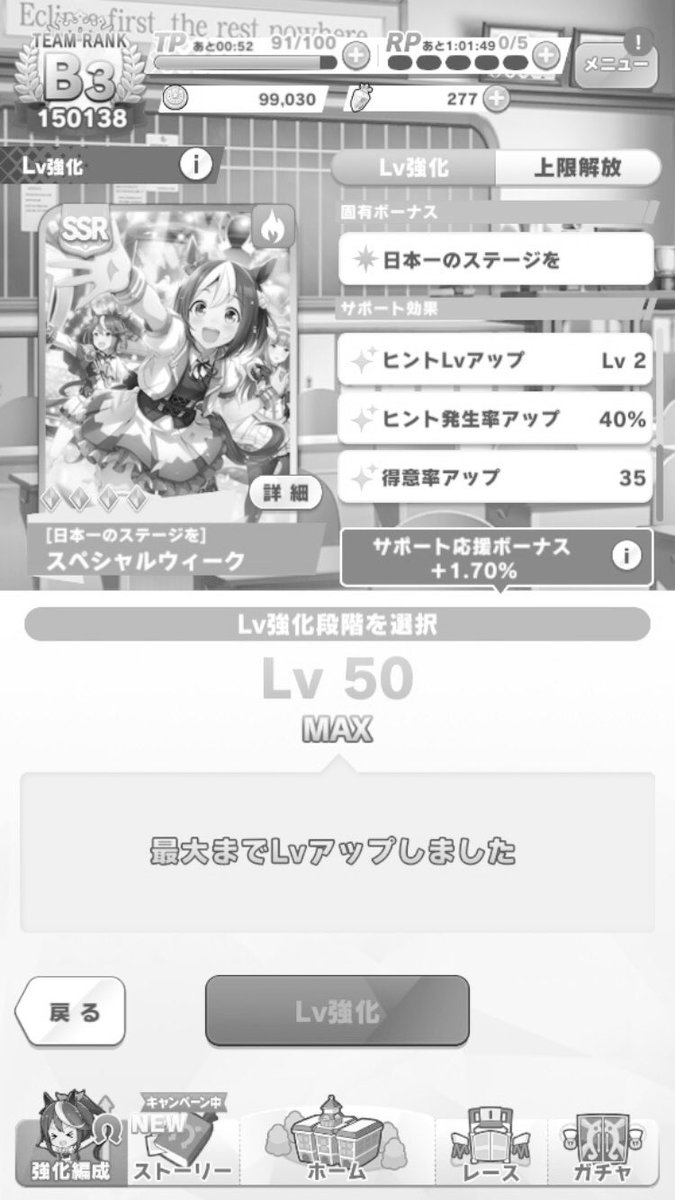 チケゾー全身全霊確定取得の報を受け、早すぎる死を迎えたボクのスペシャルウィークLv50
