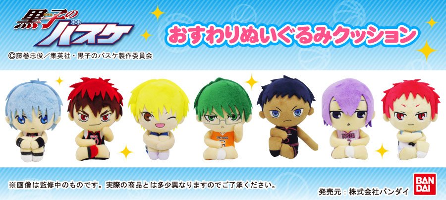 【バンダイ】ちょこんとお座りした姿がとっても可愛い「おすわりぬいぐるみクッション」(全7種)が登場!高さは、約17cm。座り方に個性が出ていますね♪発売は7月予定。tv.kurobas.com/goods/2017/04/… #kurobas
