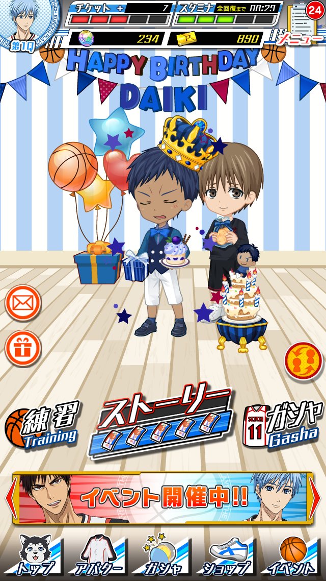 【アプリ】「青峰バースデイガシャ'16」が開催中!アバターは全部で14種! 選手アバターには桜井が初登場です! #kurobas