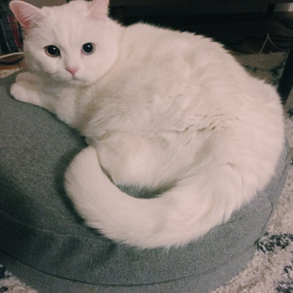 オッドアイの白猫てふ🌈、ロン毛の黒猫こち、グレーの保護猫モネ