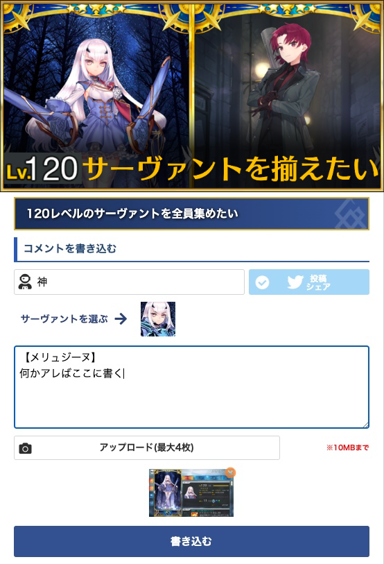 全サーヴァントの120画像をコンプリートしたいので、120持ってるよって人はぜひご協力お願いします!!