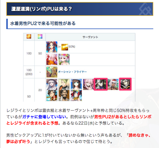 Q.リンボとレジライはピックアップされる?