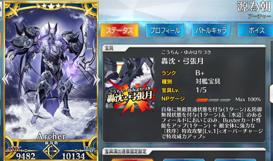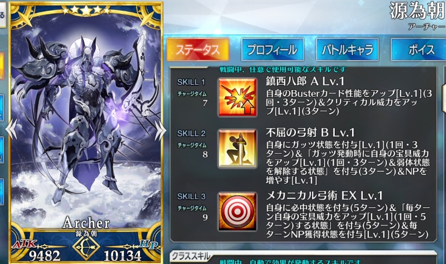 源為朝のスキル・宝具です。