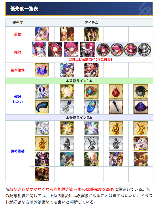 今回はちょっとアイテム交換の量が多めなので、優先度をつけてみました!