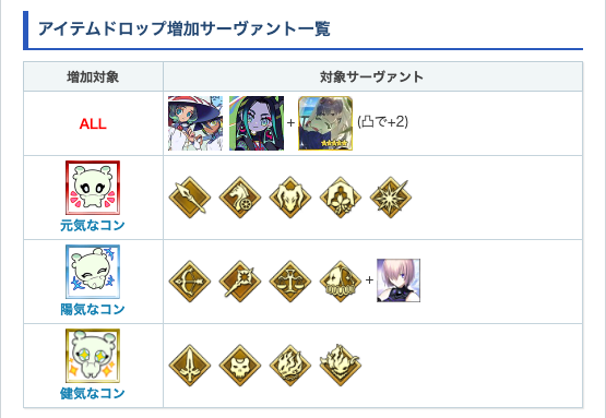 ★コンは編成するクラスによってドロップ増加