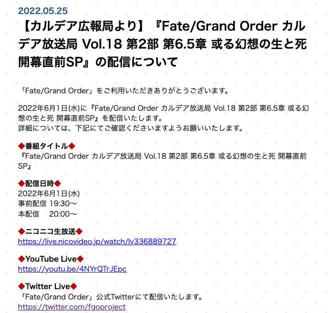 6.5章直前カルデア放送局きました!!!