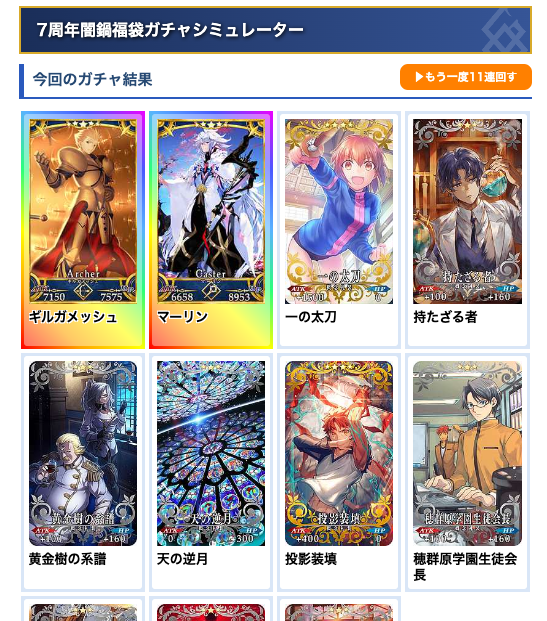 7周年カウントダウンピックアップのガチャシミュ全部用意できました!!