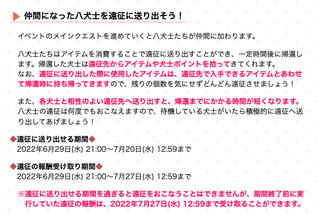 八犬伝イベントが終了したので、今日の18時に何かしらの更新が来ると思います。