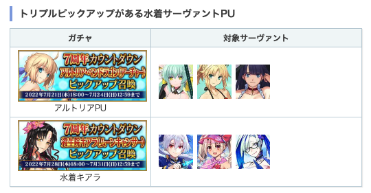 「7周年カウントダウンピックアップ召喚」では水着サーヴァントが割と多めに復刻されます!