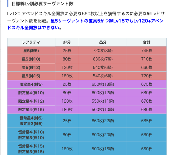 星4限定鯖を完全体(アペマ120)にする場合、絆10想定でも宝具12まで引かなければなりません。