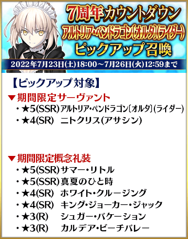 このあと18時からはメイドオルタたちの復刻ピックアップが開催されます!