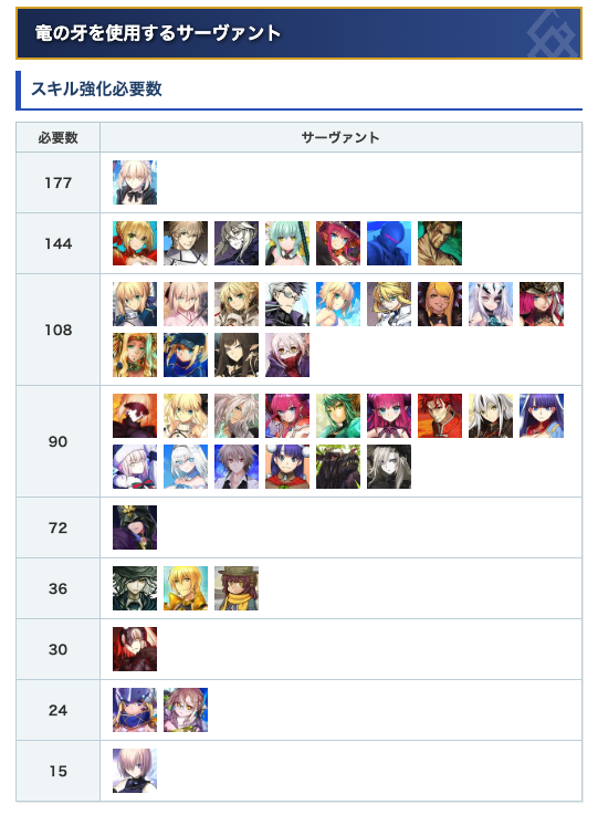 ★竜の牙の全サーヴァント必要数一覧はコチラ