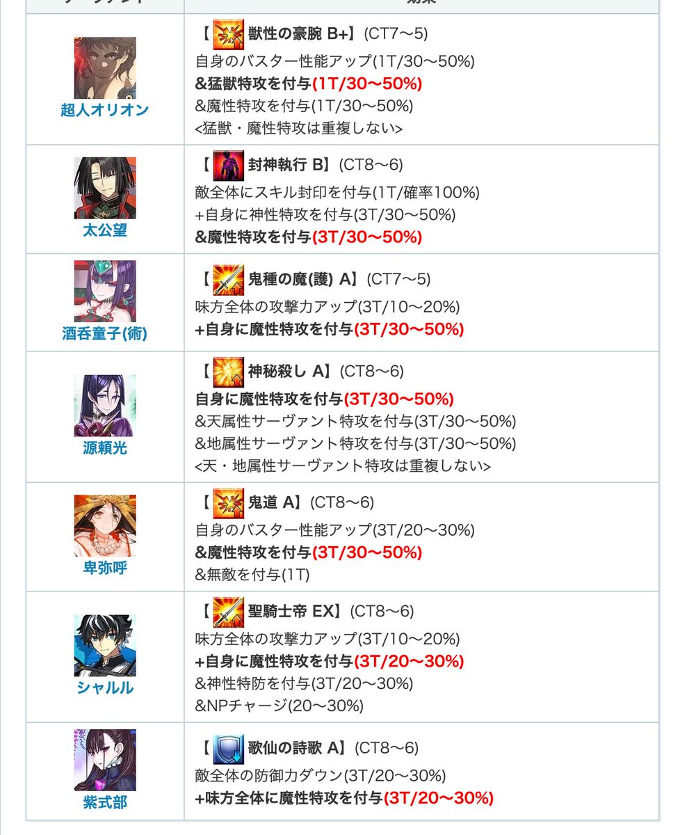 魔性特攻を持つサーヴァントはこちらの記事でまとめて検索できます!