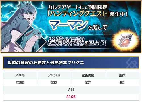マーマンハントでドロップする追憶の貝殻の必要数です!