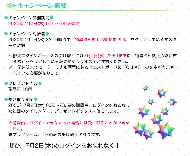 劇場版HFの公開日が決定したので、HF公開記念キャンペーンも同時期に開催されそう。