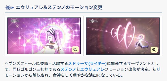 記念礼装や風王結界、ゴルゴン姉妹のモーション改修など3月から宙ぶらりんだったアレコレがようやく実装になると思われます。