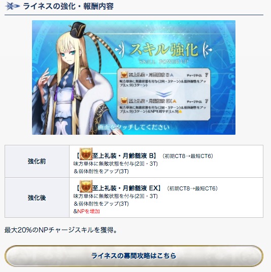 ライネスは強化でスキル3にNPチャージが追加!