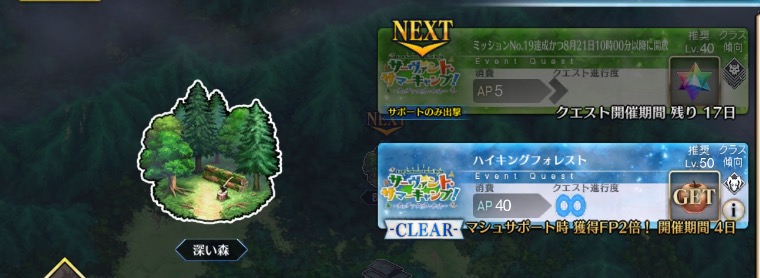 サマーキャンプのメインストーリークリアしました!クリアで聖杯獲得と虞美人の正式加入が行われます。新しいフリクエなどはありませんが、昼と夜の切り替えシステムが登場したので好きなタイミングで好きなクエストを周回できます。