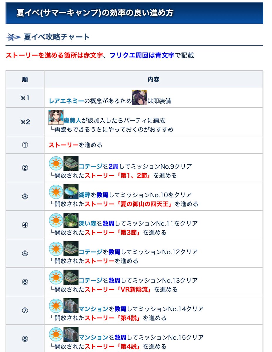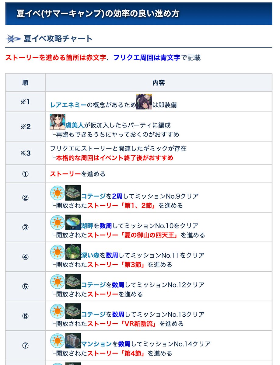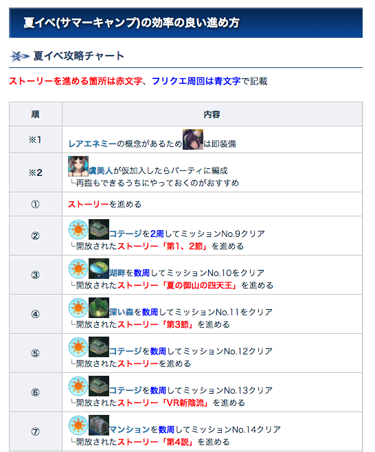 【夏イベ攻略チャート&フリクエまとめ】