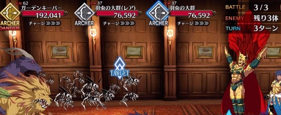 本日解放のストーリー11節進行度3ですが、高HPのバーサーカーが出現し、3ターン後からは通常攻撃を食らうと即死を付与されてしまいます。ニトクリスやキアラを持っている方は即死宝具のOC増加で問題なく突破できますが、ない方はバフを盛ったアーラシュの出番かも。