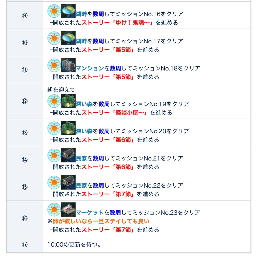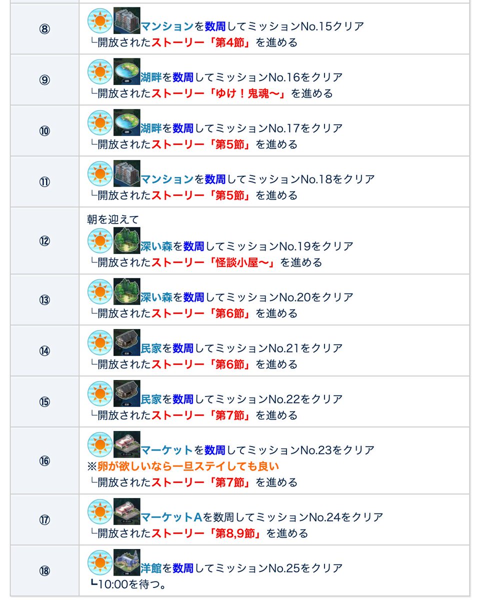 改めて本日までの攻略チャートとフリクエ情報です。先ほどのツイートの通り卵のドロップを狙う方はステイで周回してからストーリーを進めましょう。