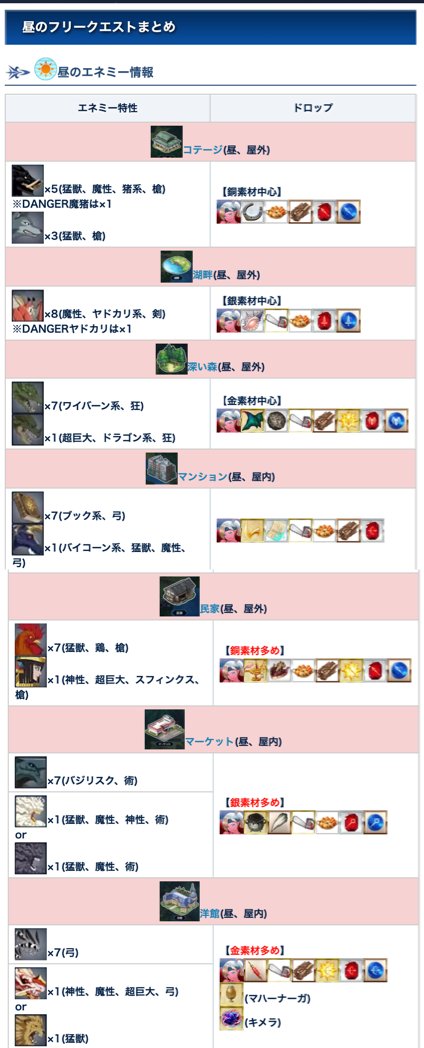 今日の攻略チャートとフリクエ一覧です。夜ミッションがなくなったため、基本的に昼だけでもイベント自体は進行していきます。