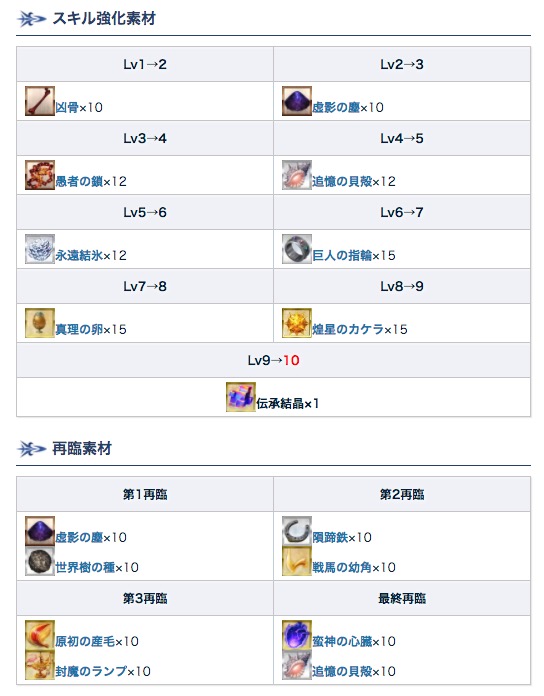 アビゲイルのスキル上げ・再臨素材です。カケラ&卵をまた持っていくので、スキル上げはかなりしんどい気がします。