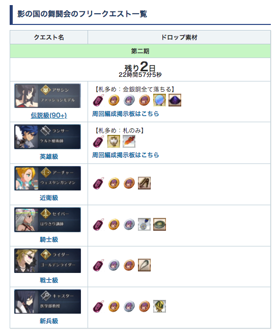 【影の国の舞闘会第二期のフリクエドロップ】