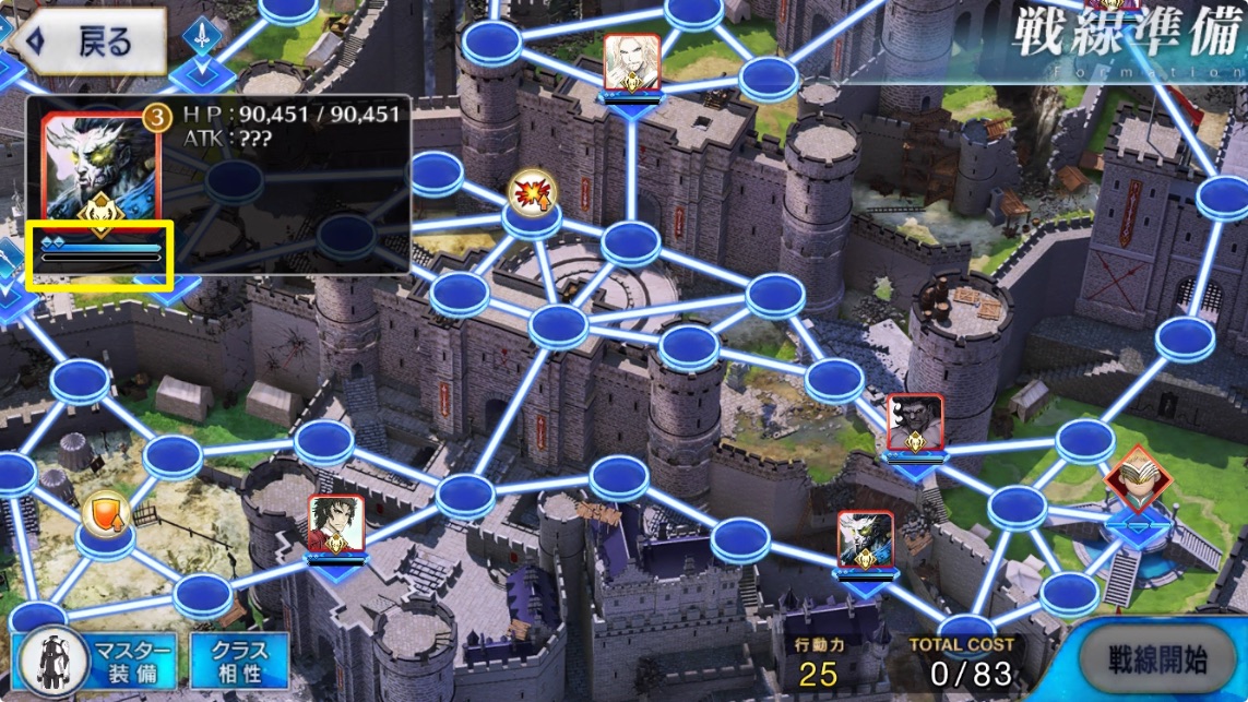 とりあえずマップ情報です!無敵、アーツバフ、NP100のマスがありますね。