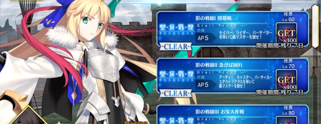 明日で影の国イベントは終了!各聖杯戦線記事に簡単な勝ち方を追記しているので忘れずにクリアしておきましょう。