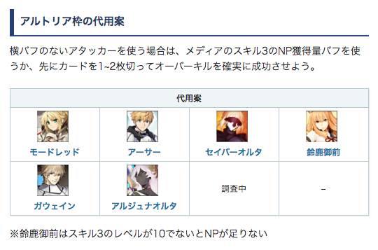 アルトリア、キャストリア、孔明の中から2騎所持していれば出来る周回編成です。