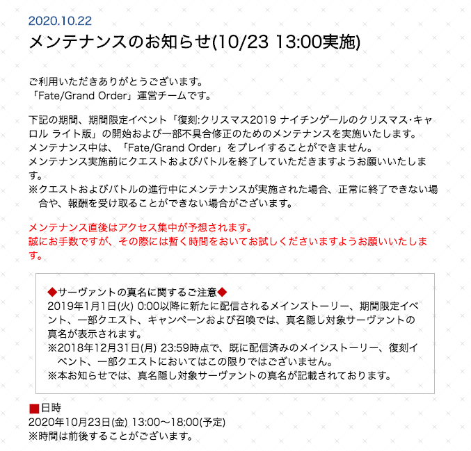 メンテナンス告知きましたね!