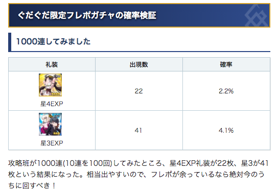 ぐだぐだ限定フレポガチャが美味しい話を記事にしました。