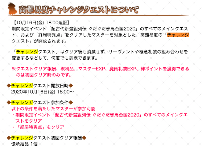 前回のカルデア放送局ライト版でカノウさんがおっしゃっていた「参加条件高めのイベント」はおそらく4.5章なのでユガまでは早めにクリアしたいですね!