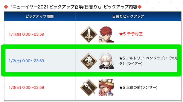 村正→メイドオルタにピックアップが切り替わります。
