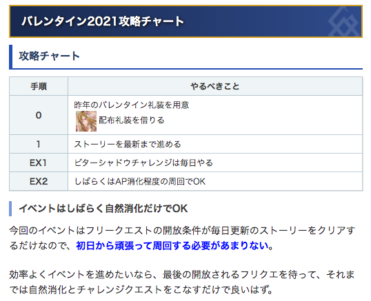 【バレンタイン2021の攻略チャート】(2/10版)