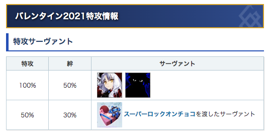 ・スーパーロックオンチョコ以外で礼装をもらった場合でも、その後からスーパーロックオンチョコを使って特攻を付与できる