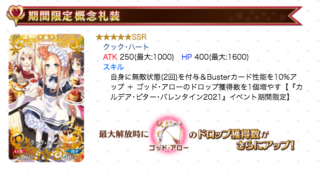 バレンタイン2021の配布礼装+ガチャ礼装です!