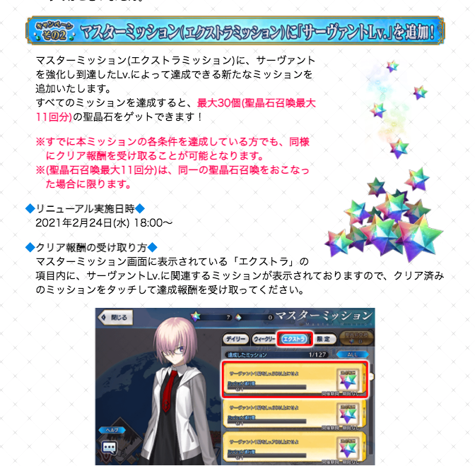 ・鯖Lvミッションで聖晶石30個!
