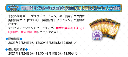 【2300万DL記念ミッション攻略チャート】