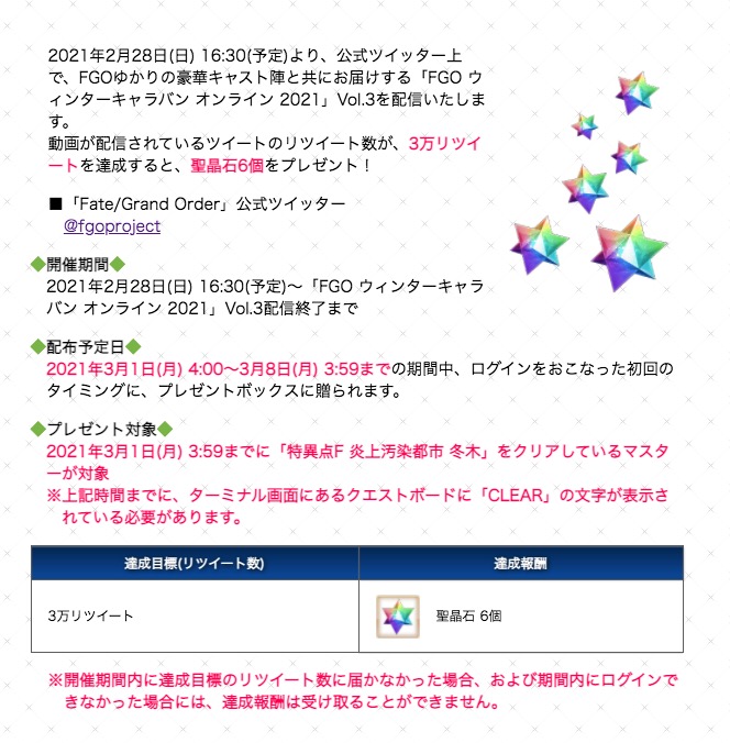 いつもの3万RTで聖晶石6個です!!