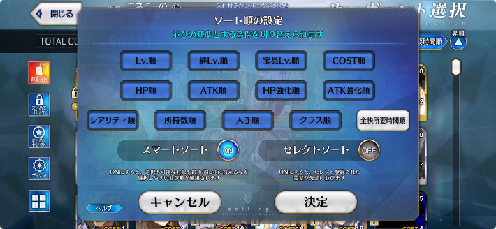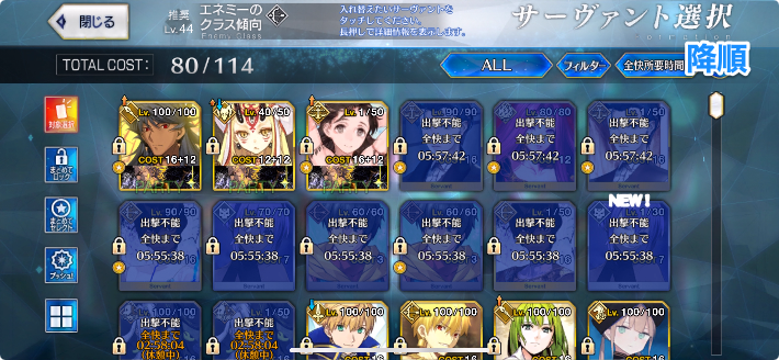 そのあとに昇順にすると選べるサーヴァントだけが上にきます!